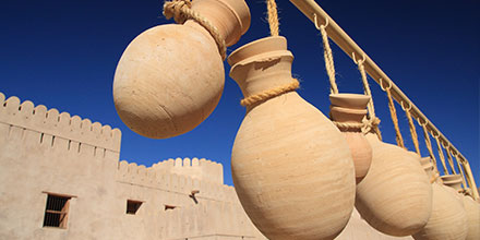 Then lose yourself in Nizwa Souk – a great place to buy ornamental silver jewellery and intricately hand‐carved ‘khanjars’ (daggers) amidst vendors selling everything from fresh produce and spices to pottery and leather goods.