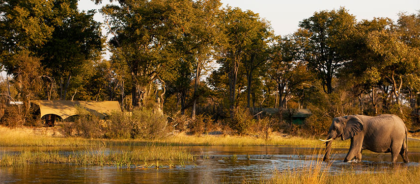 The location of your camp will allow you to enjoy both land and water activities, with the emphasis on being on the Delta’s water channels. This year-round excellent safari destination offers some of the best wildlife viewing in Africa with rare species such as the highly endangered wild dog and the wattled crane frequently seen. Choose between motorboat excursions far up the water channels, or meander slowly in shallow waters on a mokoro and enjoy morning and afternoon game drives on palm-fringed islands that are home to much wildlife.