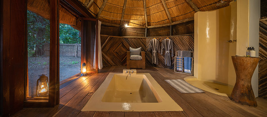 Your safari guide will be waiting for you at the Mfuwe airport where he will drive you to Luangwa River Camp. The drive to camp is 1 hour through colourful local scenes of villages, agriculture as well as bush. Luangwa River Camp sits nestled under an ancient ebony grove on the banks of the Luangwa River overlooking the game rich area known as the Luangwa Wafwa. This small and intimate camp with just five bush suites, along with its setting and location creates a real “wow” factor and a romantic feeling simply flows through the camp. Depending on your arrival time in the day you will enjoy lunch or if in the afternoon for tea and the afternoon and night game drive.
