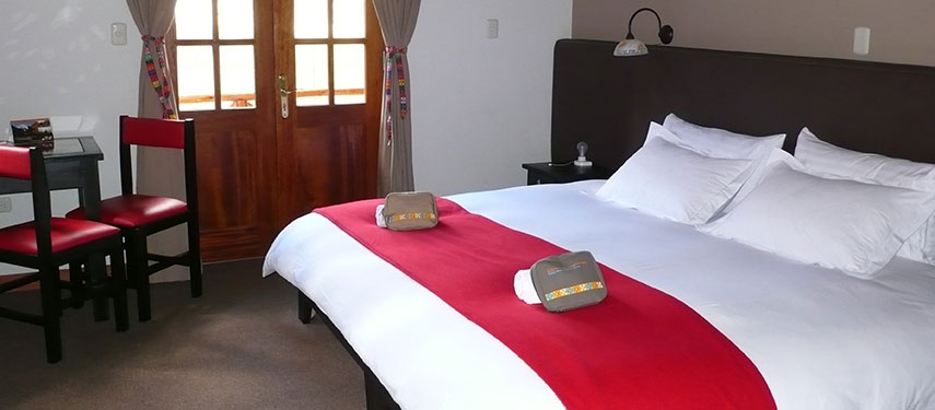 Located in the high valley of Soraypampa at 3,850 m/12,500 ft above sea level, in full view of the majestic Salkantay peak is the Salkantay Lodge where you will spend the first two nights of your trek. In addition to Andean gourmet cuisine, the Lodge offers an outdoor jacuzzi, bar & lounge, cozy reading rooms and twelve well-appointed rooms with ensuite bathrooms & hot showers, and the opportunity to undertake an acclimatisation hike to a nearby turquoise glacial lake.