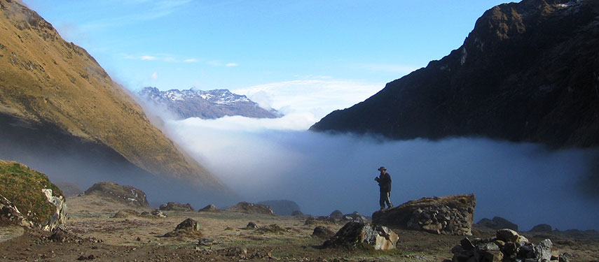 Cross the highest point on the trek, Salkantay Pass at 4,638m. Overnight at Wayra Lodge.