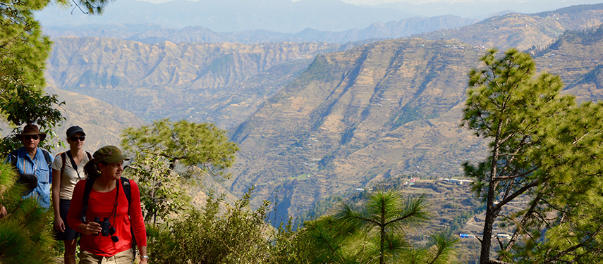 Today, you have the opportunity to attempt the “neckline” hike – a relatively challenging 16km walk, which will take you far down into a deep valley, through forests of cedar and deodar. The breathtaking icy peaks of the Himalayas will dominate the northern skyline, and you will pass temples and traditional villages. After your descent, you will contour around the hills for several kilometres and enjoy a picnic prior to the long hike up to the highest ridges. (At this point, a vehicle will offer an option should you wish to shorten the hike.)