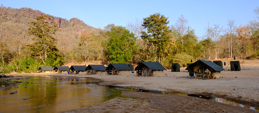 Drive into the Satpura hills and begin your walk following a trail through the Sal forest, where the birdlife can be profuse, to descend towards the source area of the Denwa River. Enjoy a picnic lunch, then continue walking for several hours to your camp on the river. You are now in the centre of this unique wilderness region, which rises like tumbled castles from the surrounding plains. Few foreigners ever come here, and Tropical Ice’s first safari in 2013 was reckoned to be the first since Captain J. Forsyth of the British army explored the region in 1857!