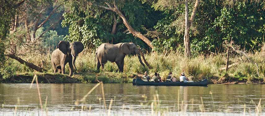 Get up early for a walking safari in the winterthorn forest and return to camp for lunch. After a rest enjoying the views across the river you can canoe down ‘Discovery Channel’ and boat cruise back to camp.