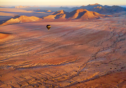 Undoubtedly the best way to view Namibia’s otherworldly landscapes is to take to the air. As you ascend you will witness the oldest desert in the world wake up as the sun rises. You’ll float silently over endless sand dunes an...