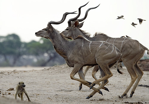 Etosha National Park offers excellent game viewing. It particularly excels during the dry season (June to November) when huge herds of animals gather around remaining water sources and provide some the most incredible photographic opportunities as predator and prey alike drink side by side. Along with healthy populations of endangered species, such as black rhino and black-faced impala, Etosha also offers rare and exciting birding opportunities and the chance to see desert-adapted lion.