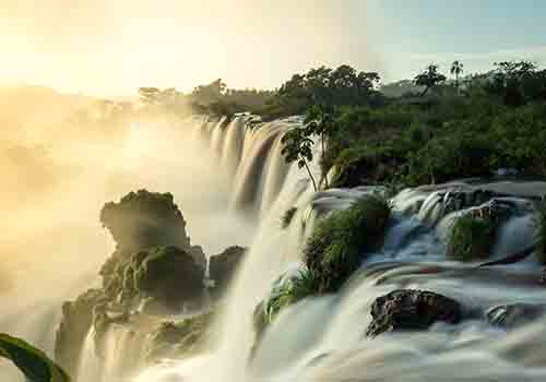 Experience the exhilarating force of Iguazu Falls up close. Walk on raised platforms that meander through the jungle, taking you perilously close to the edge as you reach various vantage points. The most dramatic is just a few met...